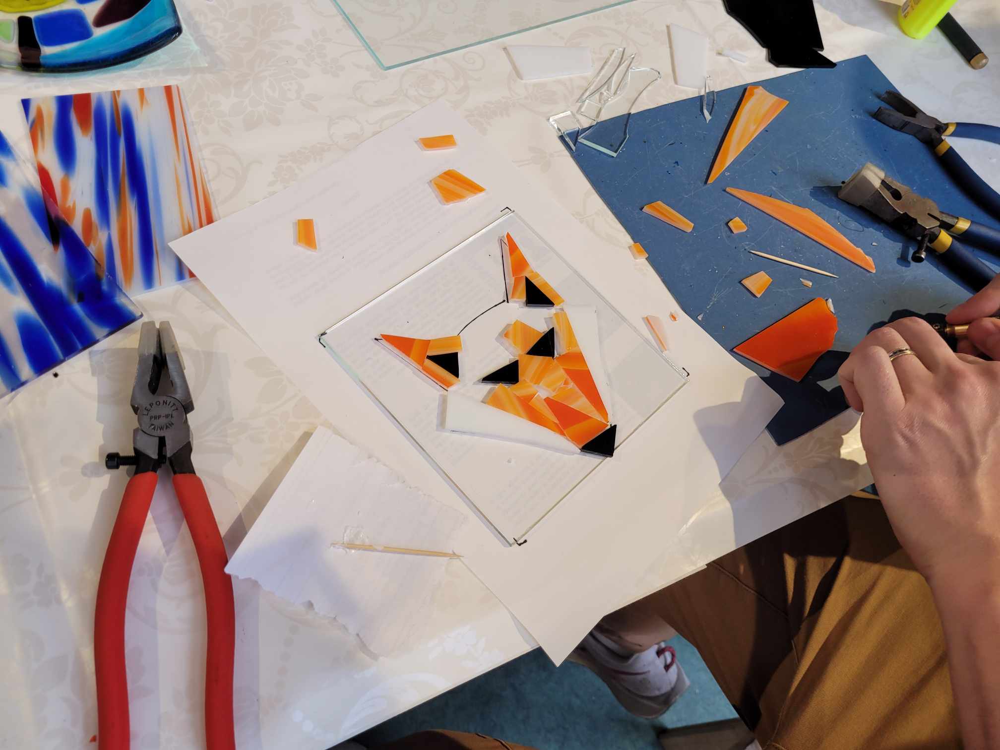 Paljudes kaunites värvides kvaliteetne sulatusklaas ja põnevad töövahendid loovad kohe ruumi rõõmsa ja erilise meeleolu. Õpite kõik koos klaasi lõikama, igaüks saab valida just seda värvi klaasid, nagu kõige enam meeldib ja kujundate kaunid koogitaldrikud (ca 15×15 cm). Taldrikud lähevad klaasiahju sulama ning saate 2 nädala jooksul kätte.