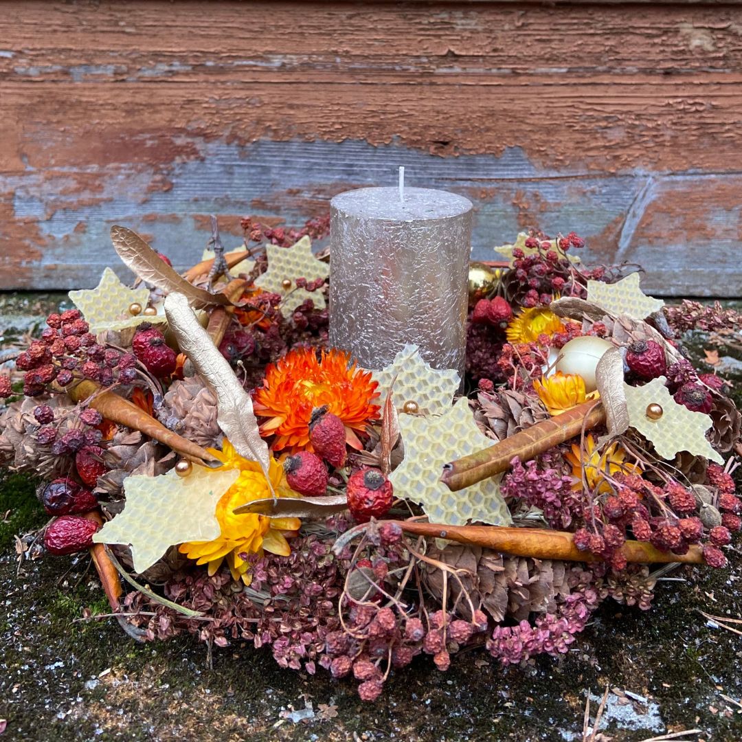 🔸Looduslikud materjalid on korjatud kodumaalt ja kaugemaltki, dekoreerimiseks kasutame muuhulgas käsitsi valmistatud kaunistusi
